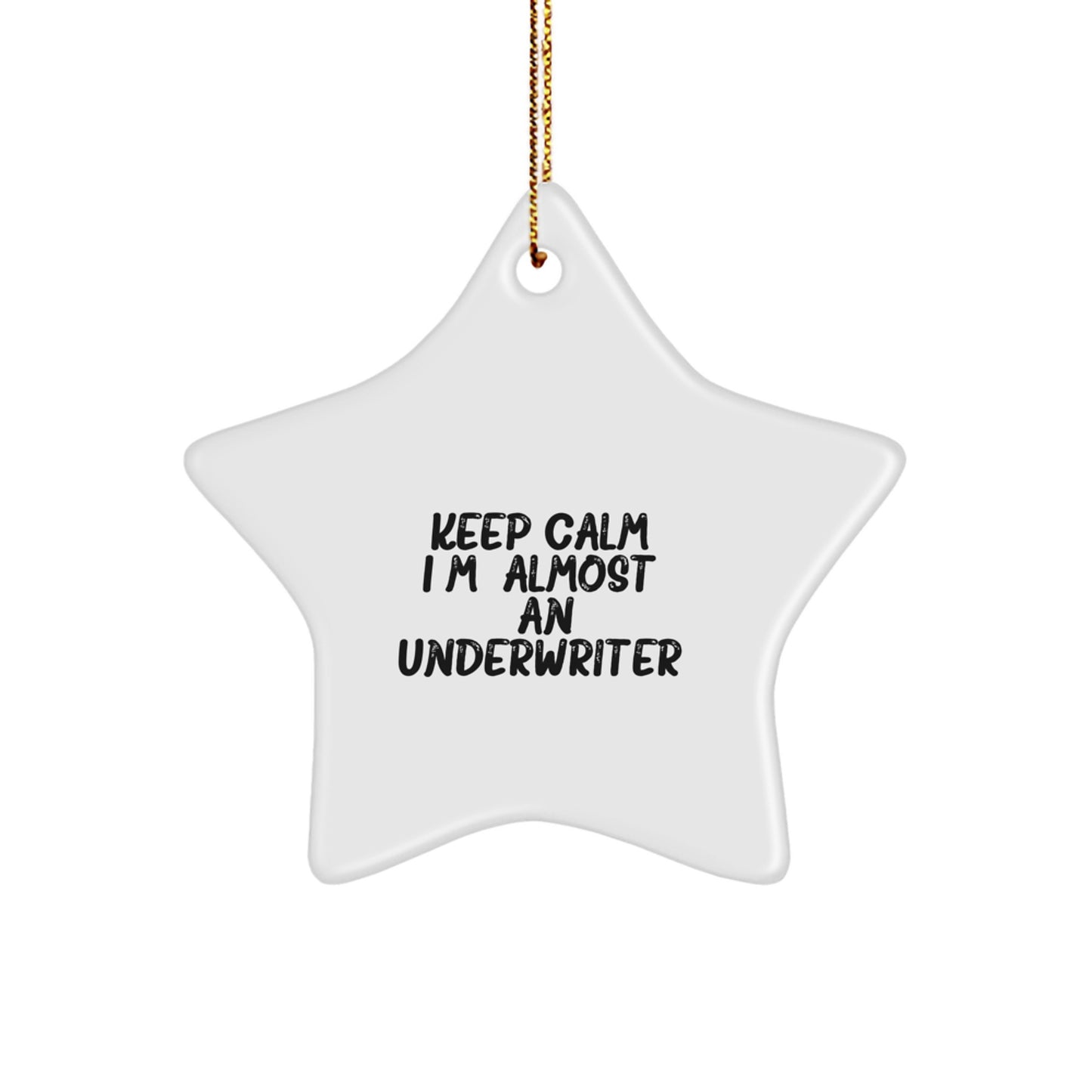 - This Funny Underwriter Gifts Star Ornament is a thoughtful way to show appreciation for the hardworking Underwriters in your life. The 'Keep Calm, I'm (almost) An Underwriter.' quote will bring a smile to their face and remind them of their dedication to their work.