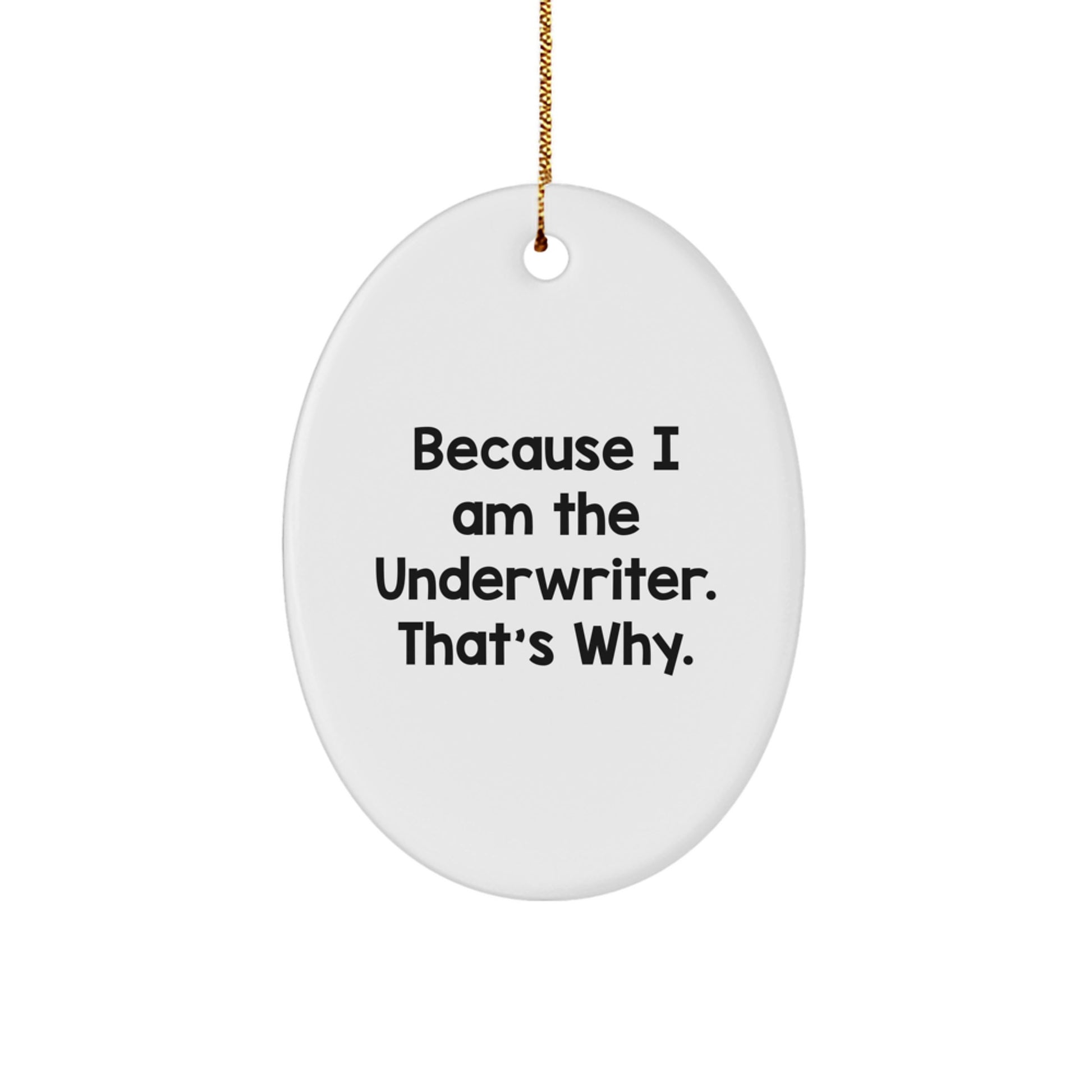 - Show your appreciation for the Underwriter in your life with this funny Oval Ornament featuring the quote 'Because I Am The Underwriter. That's Why.' This Underwriter Oval Ornament is a unique gift idea for friends and family, and it's perfect for any occasion, especially Christmas.