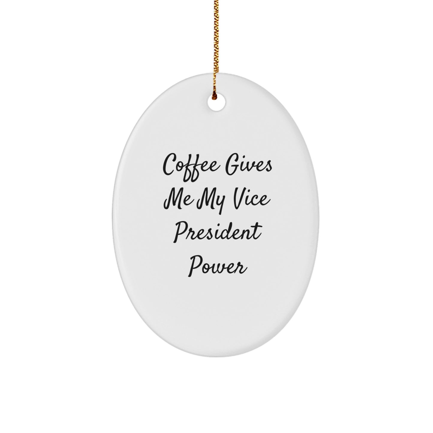 Funny Vice President Gifts, Oval Ornament for Xmas, 'Coffee Gives Me My Vice President Power' Quote, Gifts from Friends, Gifts for Vice President