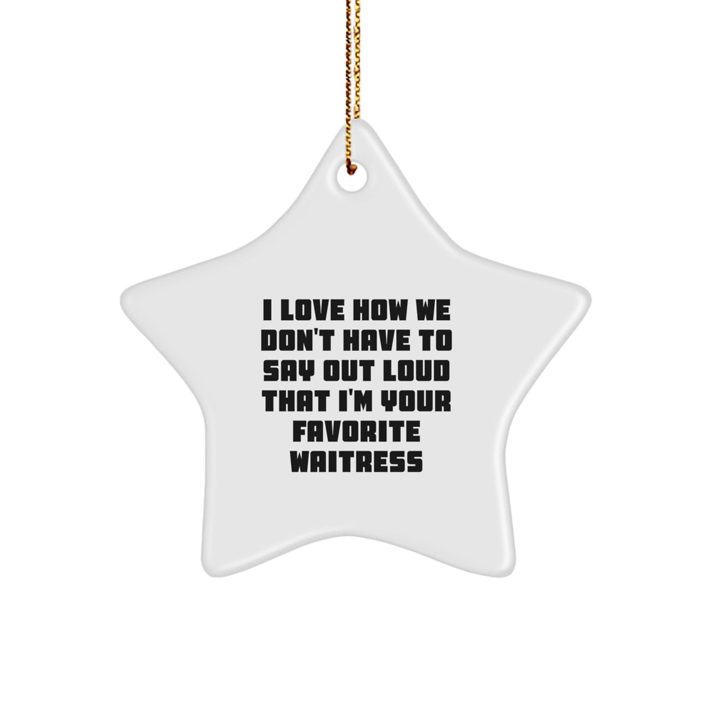 Funny Waitress Gifts from Men to Women, I Love How We Don't Have To Say Out Loud That I'm Your Favorite Waitress, Christmas Star Ornament for Coworkers or Family