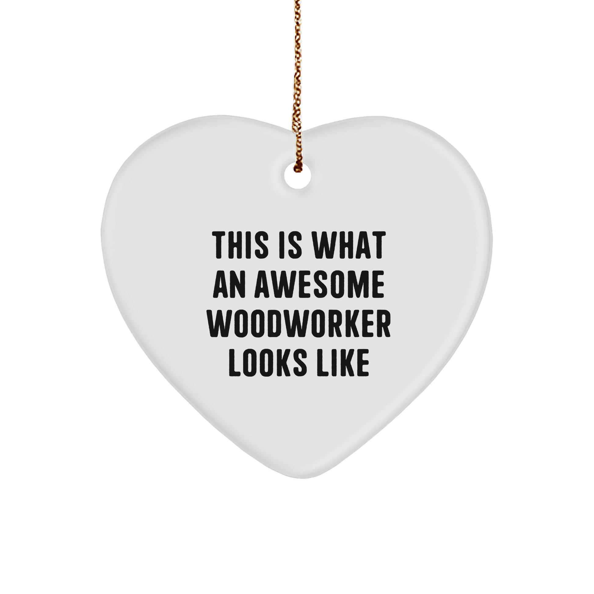 Funny Woodworker Gifts from Family for Christmas - Heart Ornament with 'This Is What An Awesome Woodworker Looks Like' Quote
