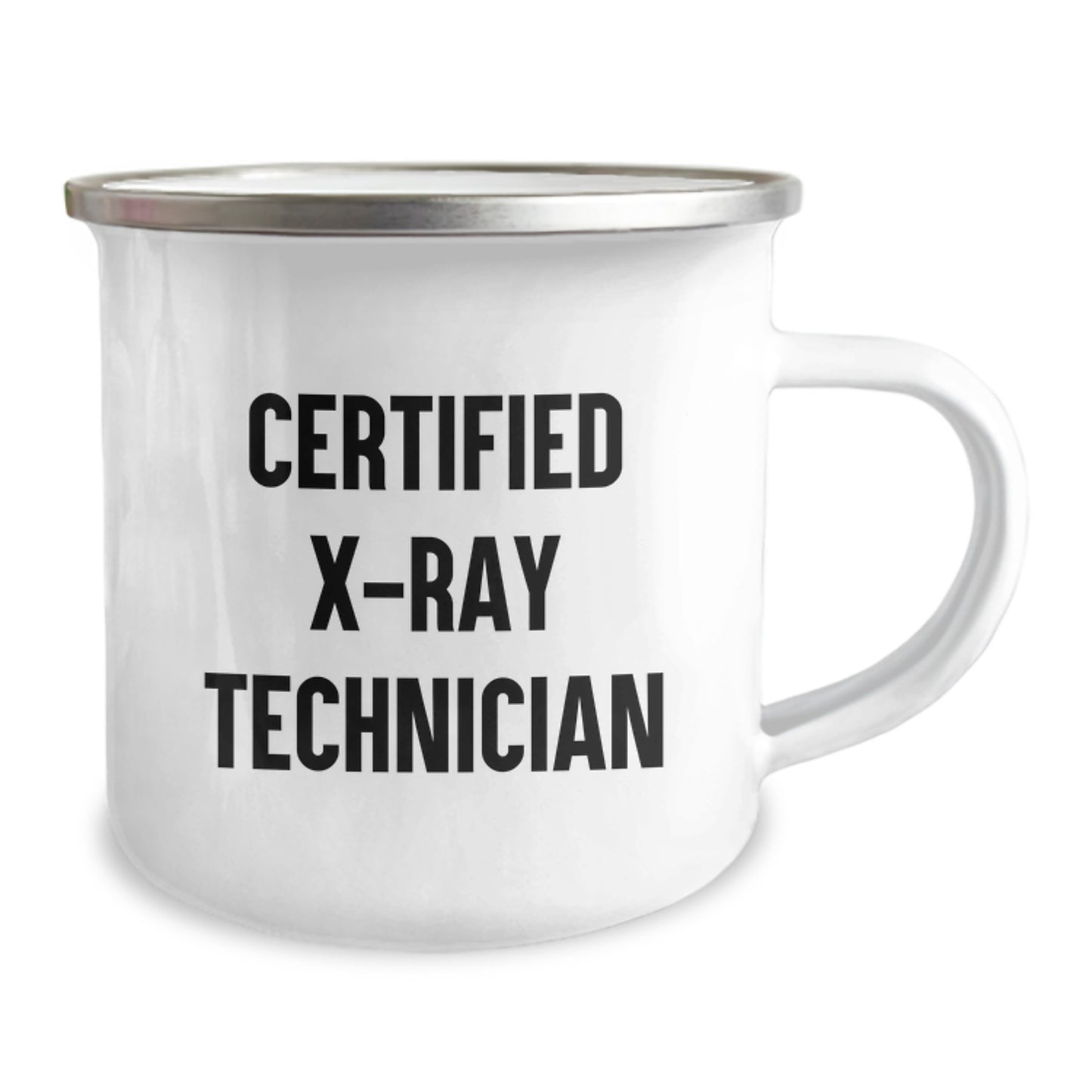 Funny X-Ray Technician Gifts from Friends Birthday Unique Camping Mug, 'Certified X-ray Technician' Quote, 12 oz Stainless Steel Enamel Finish