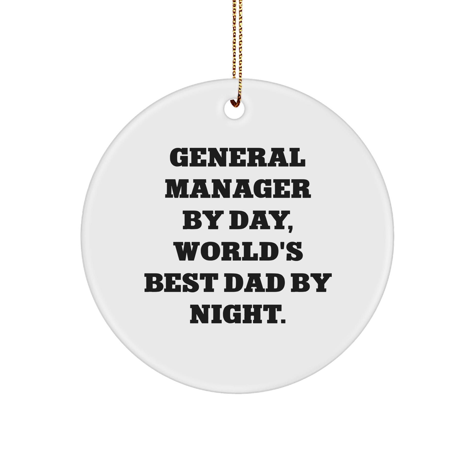 General Manager Gifts, Funny Circle Ornament, 'General Manager By Day, World's Best Dad By Night.' Quote, Christmas Unique Gifts from Men to General Manager