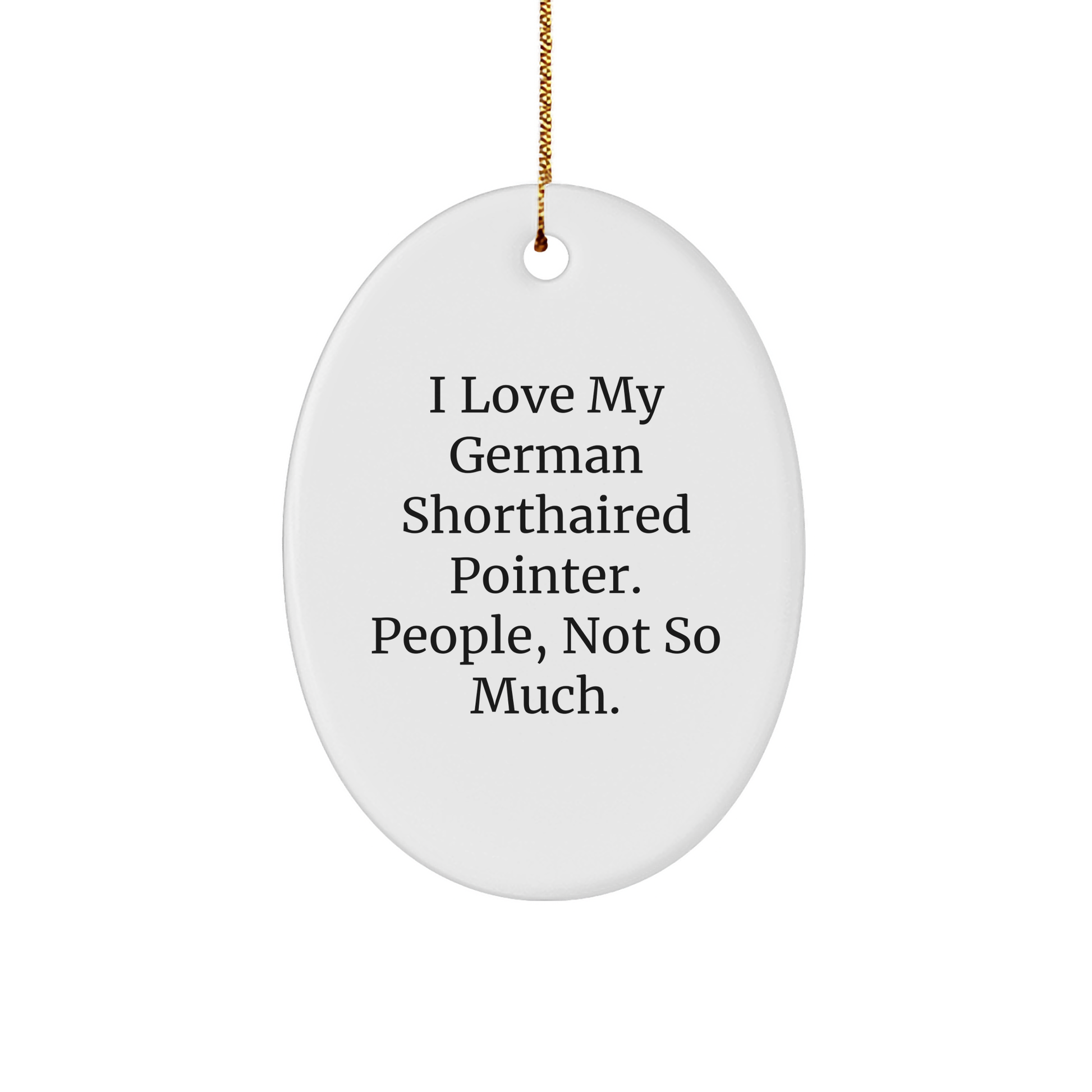 - Bring joy and laughter to your loved ones this holiday season with this thoughtfully designed German Shorthaired Pointer ornament, carefully crafted with a festive gold cord for easy hanging and a quote that will have everyone smiling - 'I Love My German Shorthaired Pointer. People, Not So Much.' - Make it a gift to treasure this holiday season!