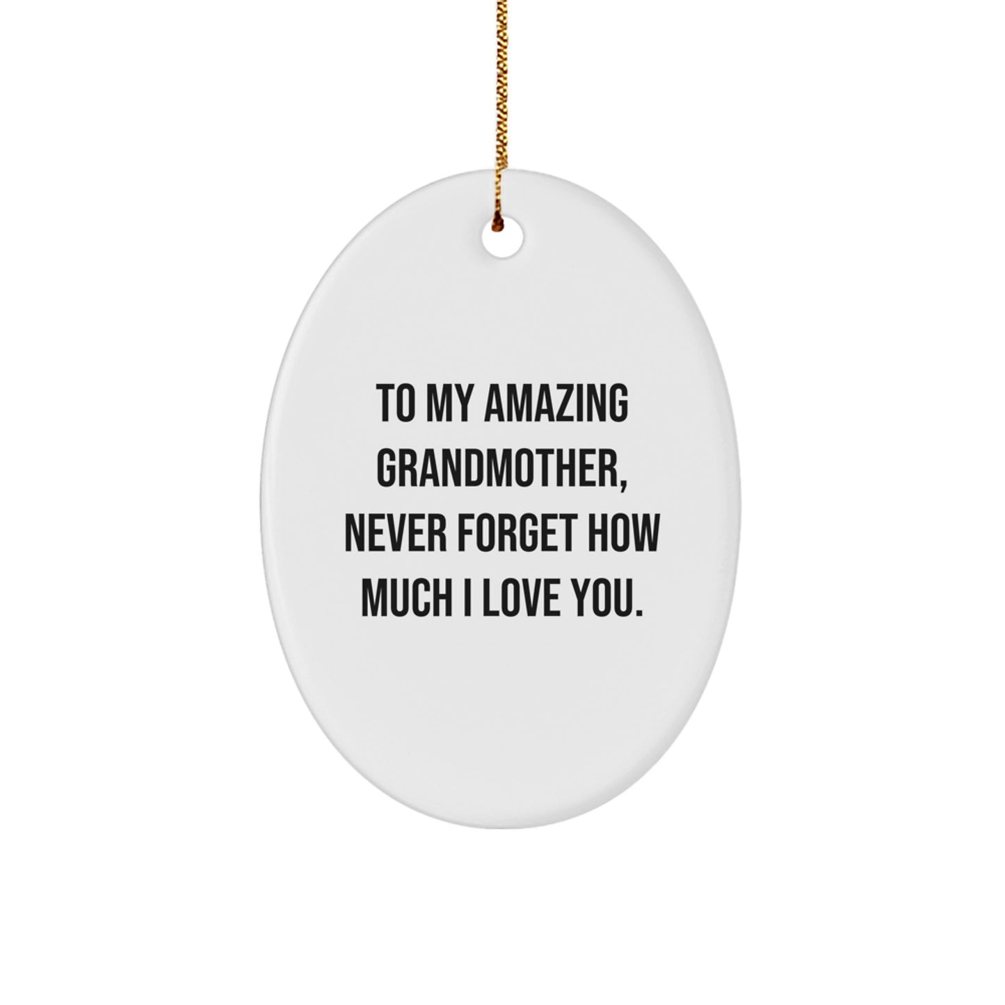 - Get a beautiful Oval Ornament for your amazing grandmother this Christmas. The quote 'To My Amazing Grandmother' is a heartwarming message that will make her feel loved and appreciated.