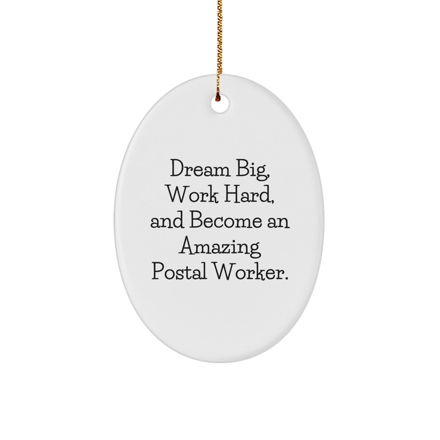 - Our 'Dream Big, Work Hard, And Become An Amazing Postal Worker.' oval ornament is a great way to show appreciation for the hard work and dedication of postal workers. Whether you're looking for a unique Christmas gift or just want to bring a smile to someone's face, this ornament is a great choice.