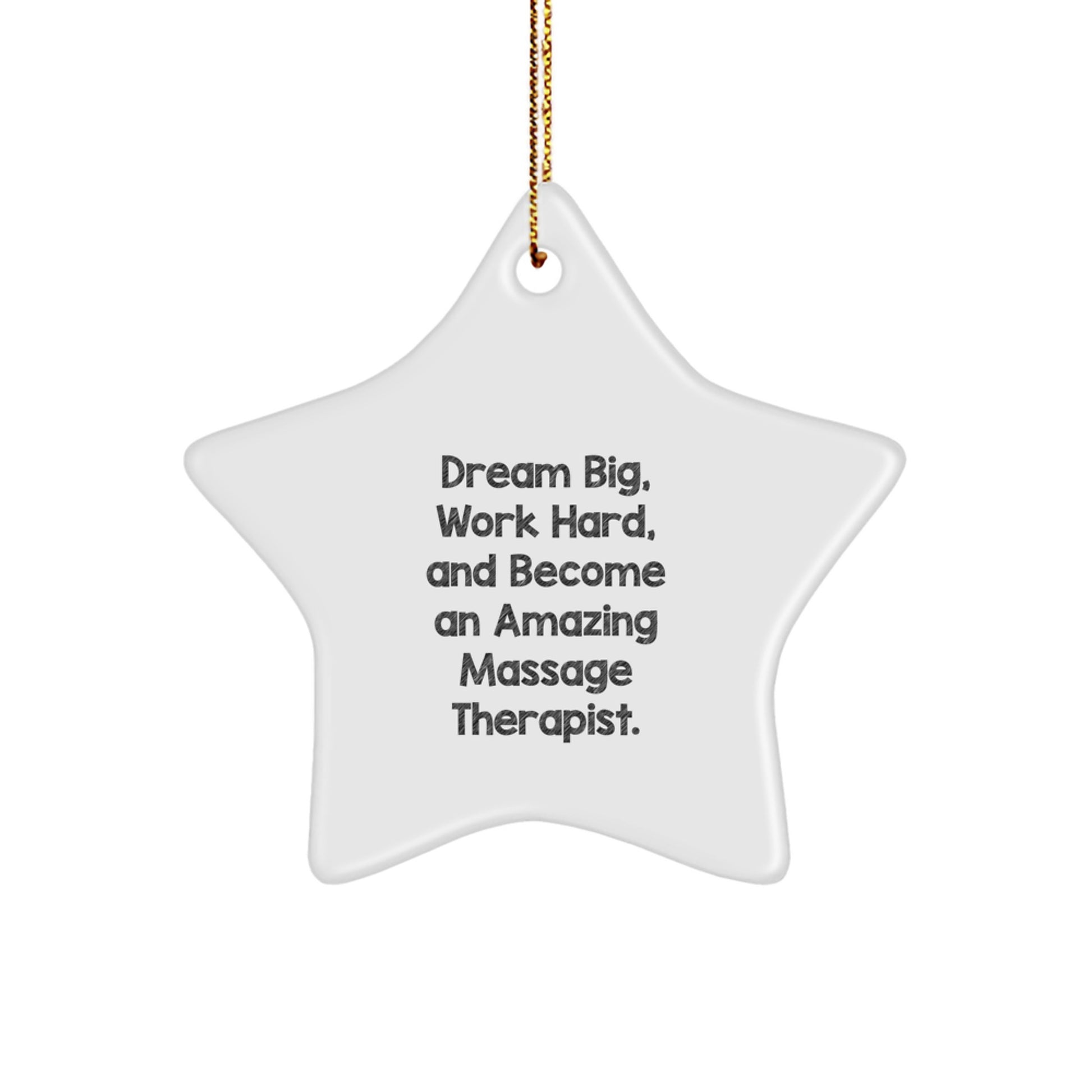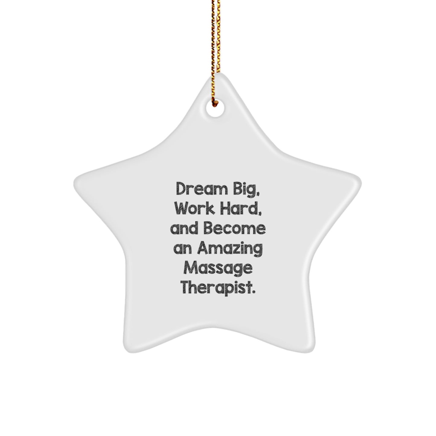 - Order this Star Ornament today and make this Christmas one to remember! It's the ideal gift for massage therapists, featuring a vibrant white star design and a quote that inspires them to strive for greatness. Whether you're looking for a gift for a loved one or just want to show your support, this Star Ornament is the perfect choice.