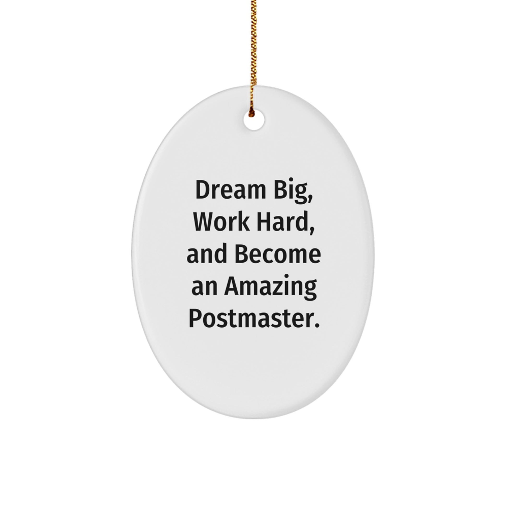 Gifts from Friends for Postmaster - 'Dream Big, Work Hard, And Become An Amazing Postmaster.' Oval Ornament, White, Christmas Unique Gifts