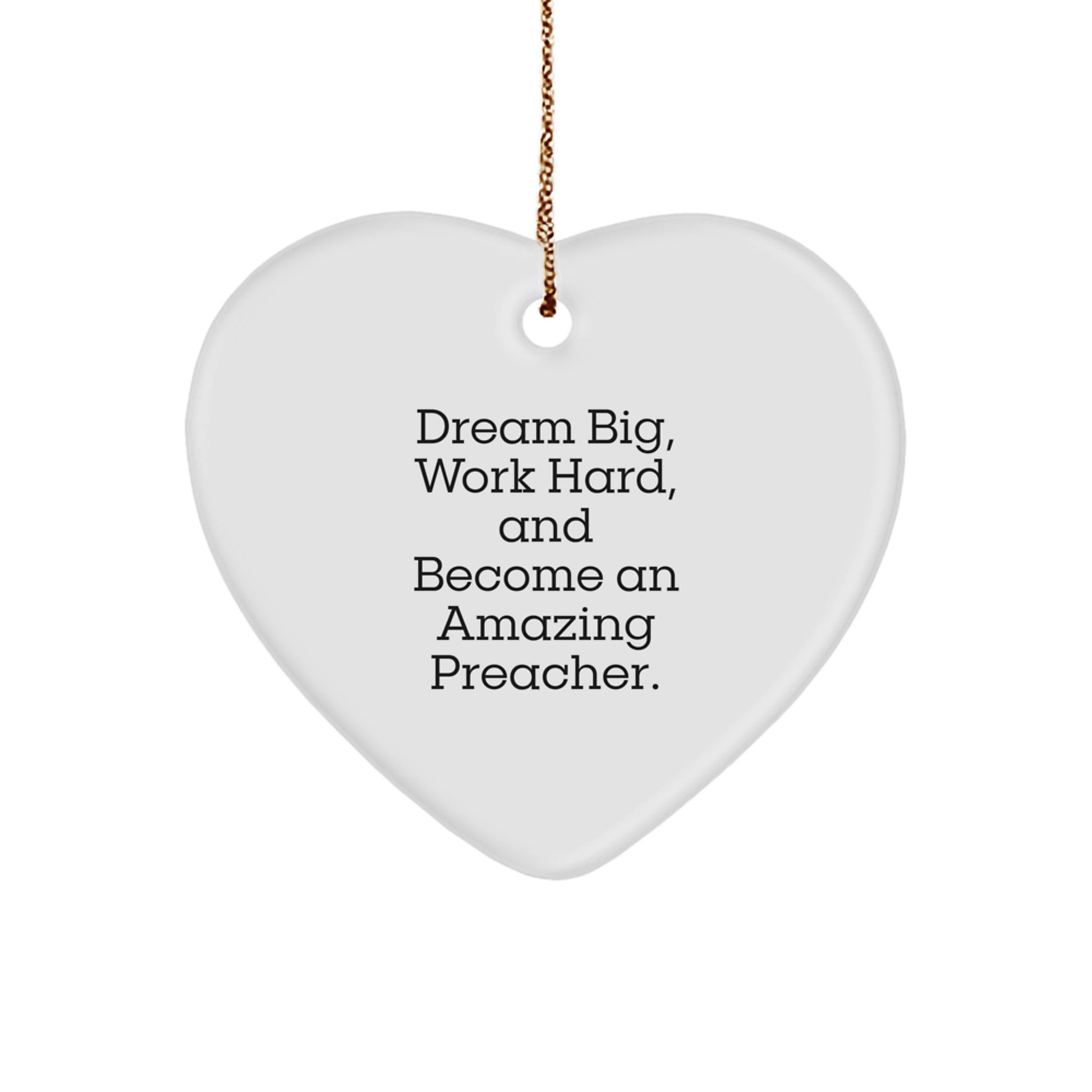 - This inspirational heart-shaped ornament features the quote 'Dream Big, Work Hard, And Become An Amazing Preacher' to remind your favorite Preacher to strive for greatness.