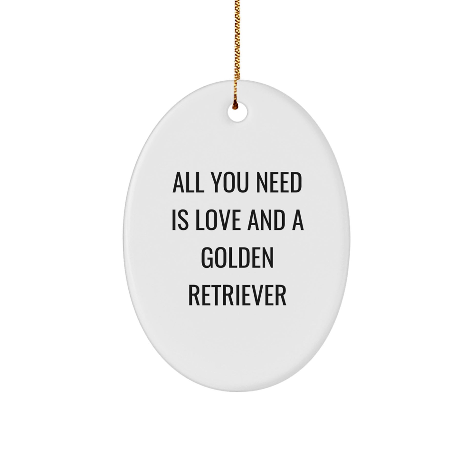 Golden Retriever Dog Lovers Gifts from Friends to Family - Oval Ornament with 'All You Need Is Love And A Golden Retriever' Quote for Christmas