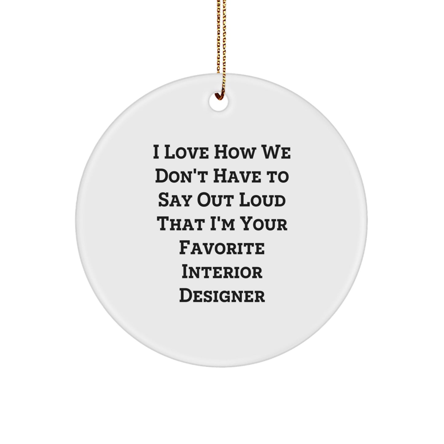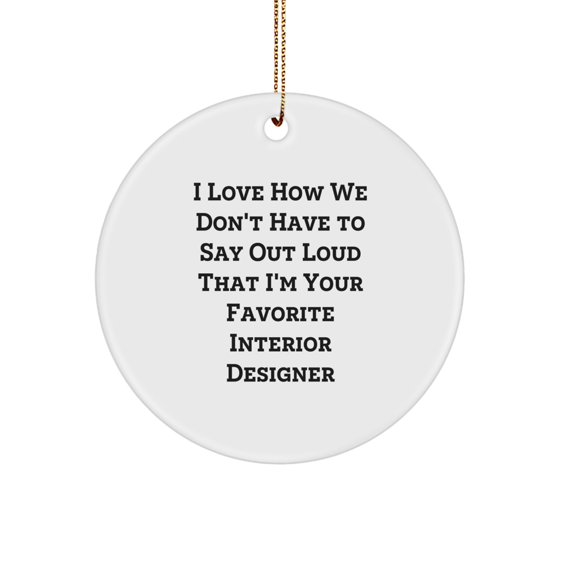 - Unique Circle Ornament with a funny quote that says it all: 'I Love How We Don't Have To Say Out Loud That I'm Your Favorite Interior Designer'.