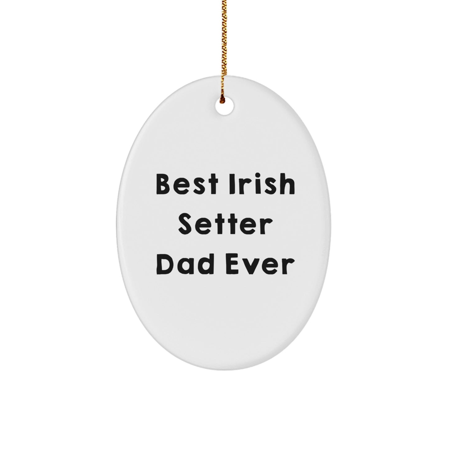 - Bring home the magic of this Christmas with a stunning Irish Setter Dog Oval Ornament, crafted from durable MDF with a high-gloss plastic finish, featuring the quote 'Best Irish Setter Dad Ever'. Hang it proudly on your Christmas tree and make it a special moment for your loved ones - it's a gift that will be cherished for years to come.