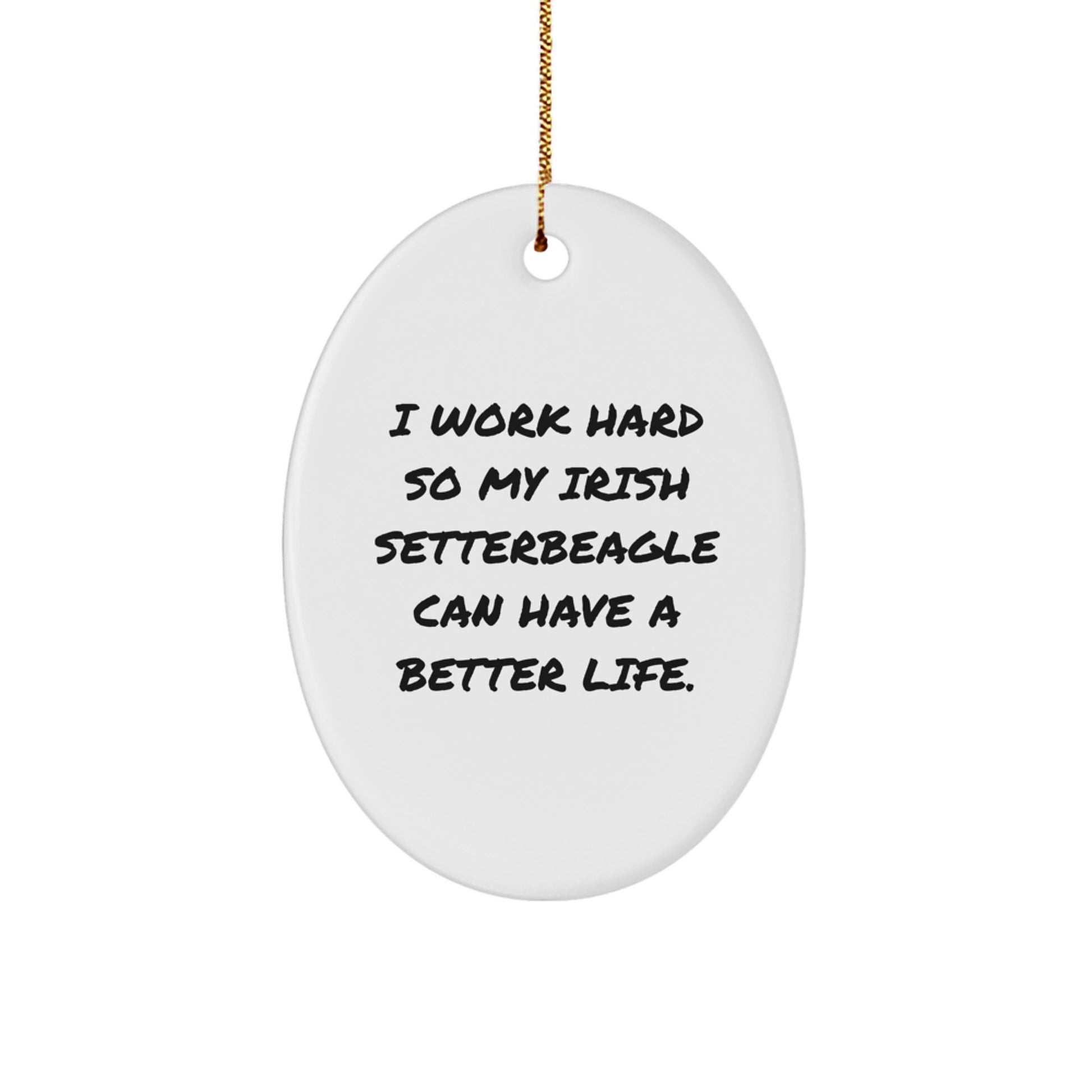 Irish Setter Dog Lover Gifts from Family, Christmas Unique Oval Ornament with 'I Work Hard So My Irish Setter Can Have A Better Life.' Quote, Gifts for Irish Setter Dog Owners