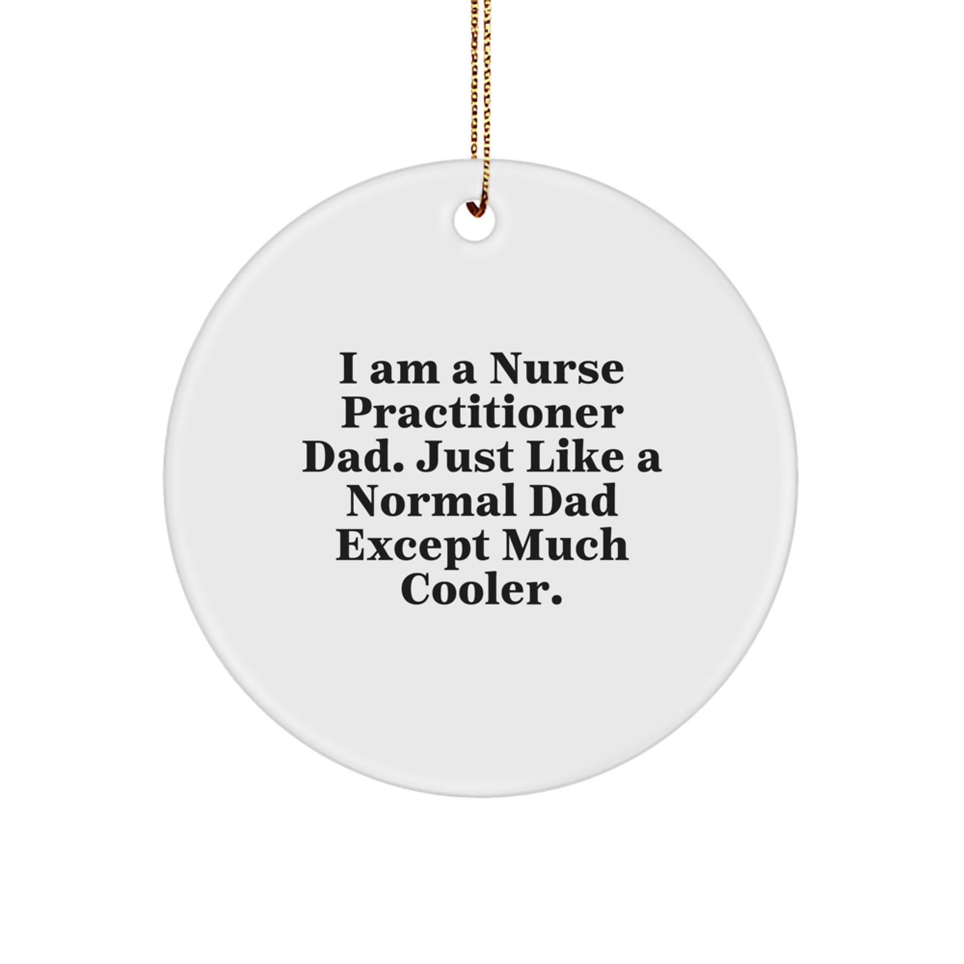- As a Nurse Practitioner, you'll appreciate the unique 'I Am A Nurse Practitioner Dad. Just Like A Normal Dad Except Much Cooler.' quote on this Circle Ornament, perfect for your office or home. Made from durable MDF with a high-gloss plastic finish, it's a thoughtful gift for your colleagues or a great way to show off your profession during Christmas.