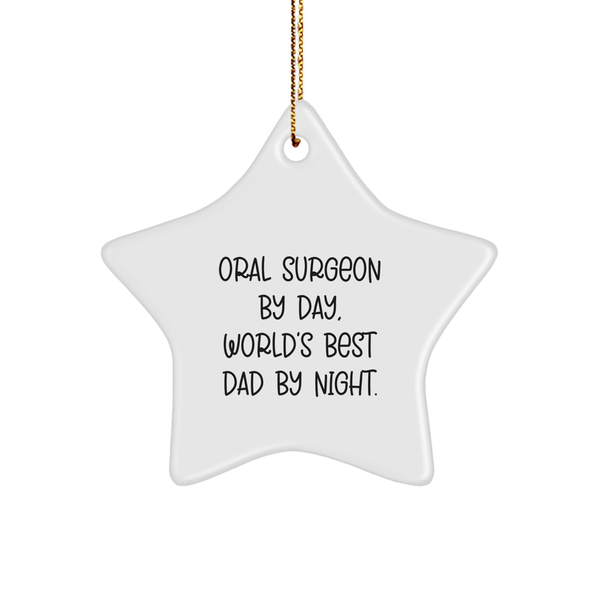- The quote 'Oral Surgeon By Day, World's Best Dad By Night' is a fun and inspirational way to celebrate the Oral Surgeon in your life, and this star ornament is a wonderful way to showcase it. Whether you're a friend, family member, or coworker, this gift is sure to bring a smile to their face.