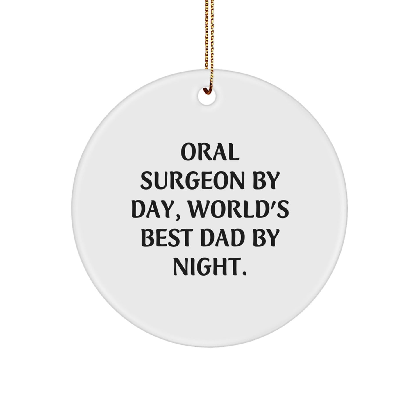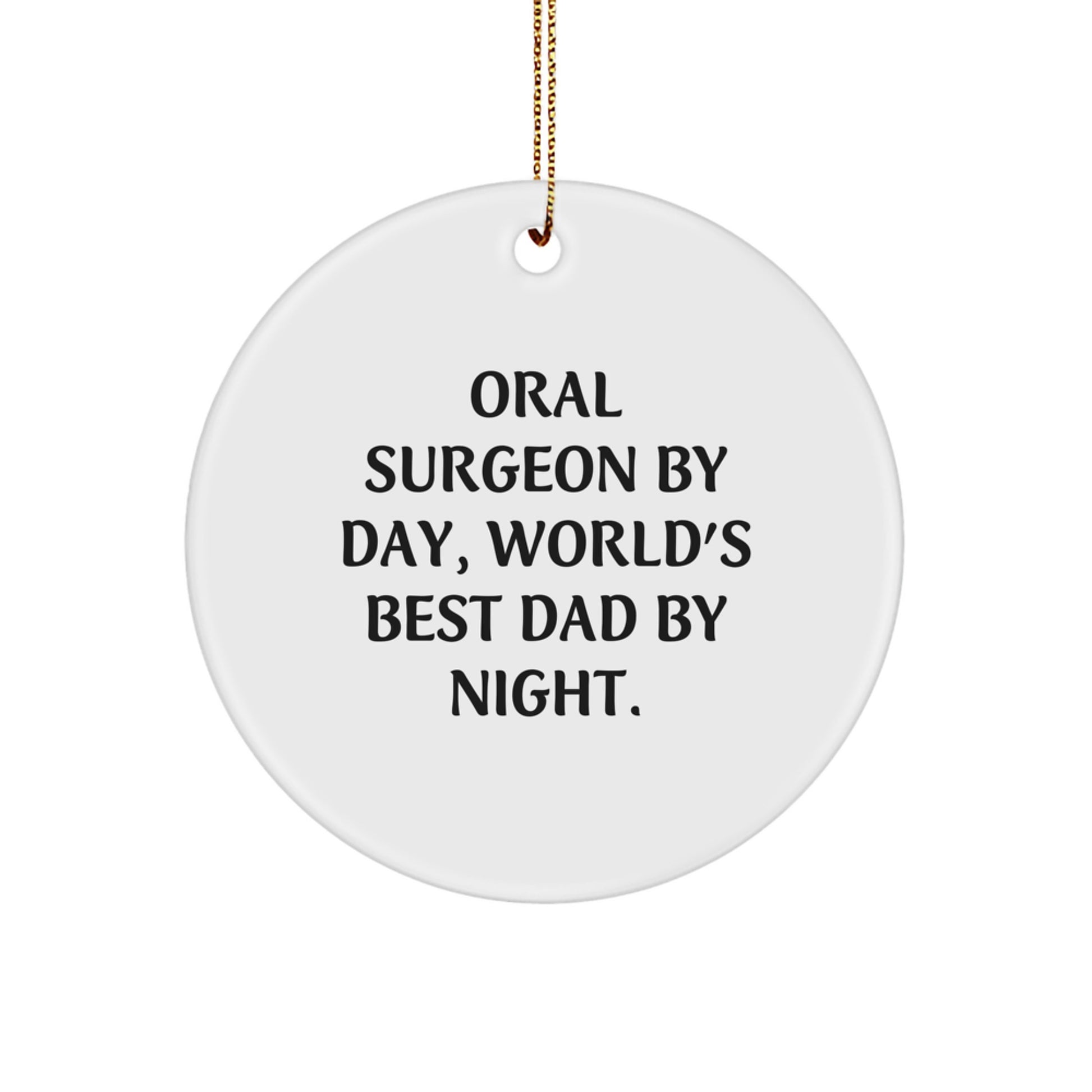 - Give a thoughtful and personalized gift to a dentist or oral surgeon with this unique 'Oral Surgeon By Day, World's Best Dad By Night.' circle ornament. Its lightweight and resistant design makes it perfect for households with children or pets, and the festive gold cord makes hanging stress-free.