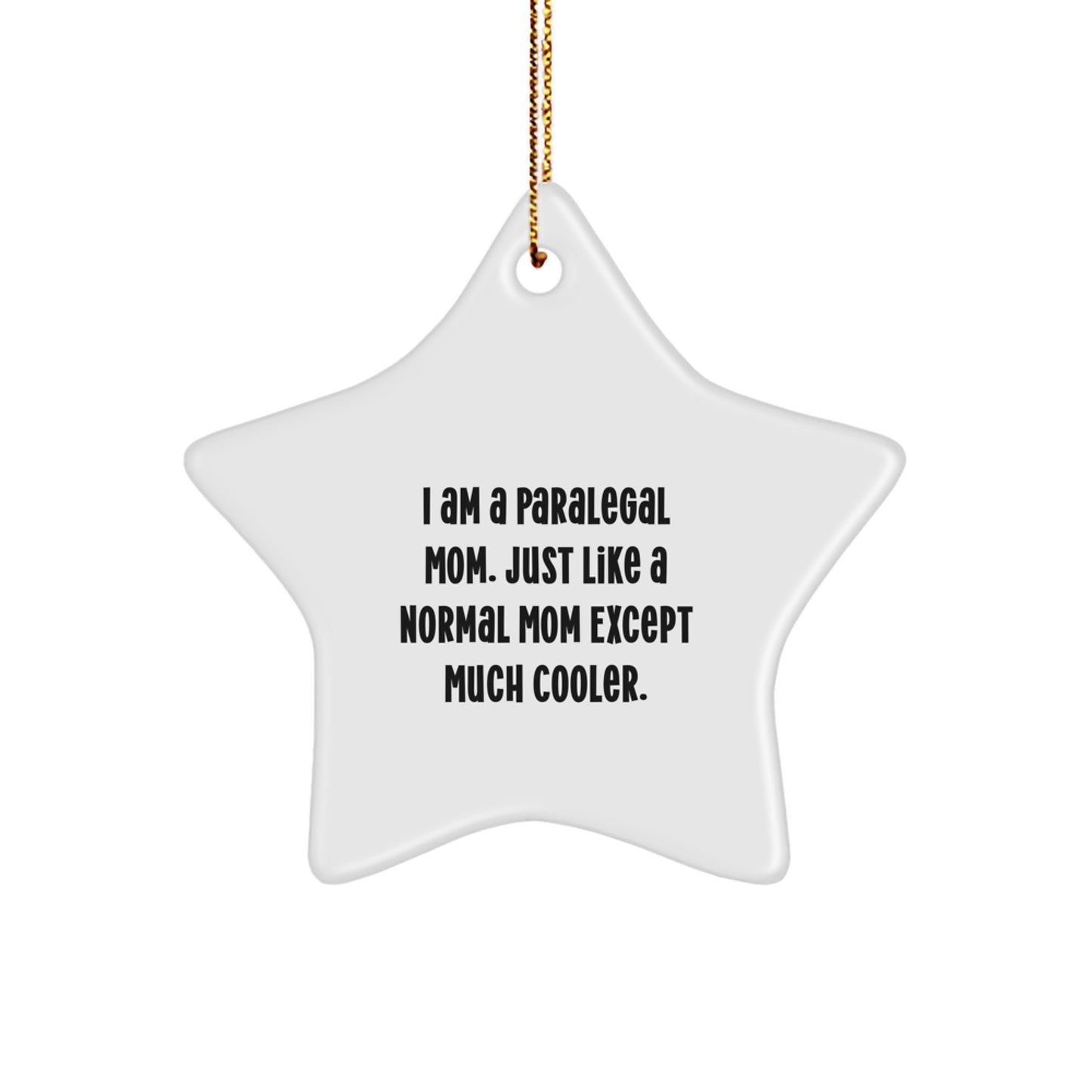 - Our Paralegal Star Ornament is a funny and unique gift for paralegal moms who are just like normal moms except much cooler! Made from sturdy MDF with a high-gloss plastic finish, this ornament is lightweight and resistant to breaking, making it a great choice for households with children or pets.