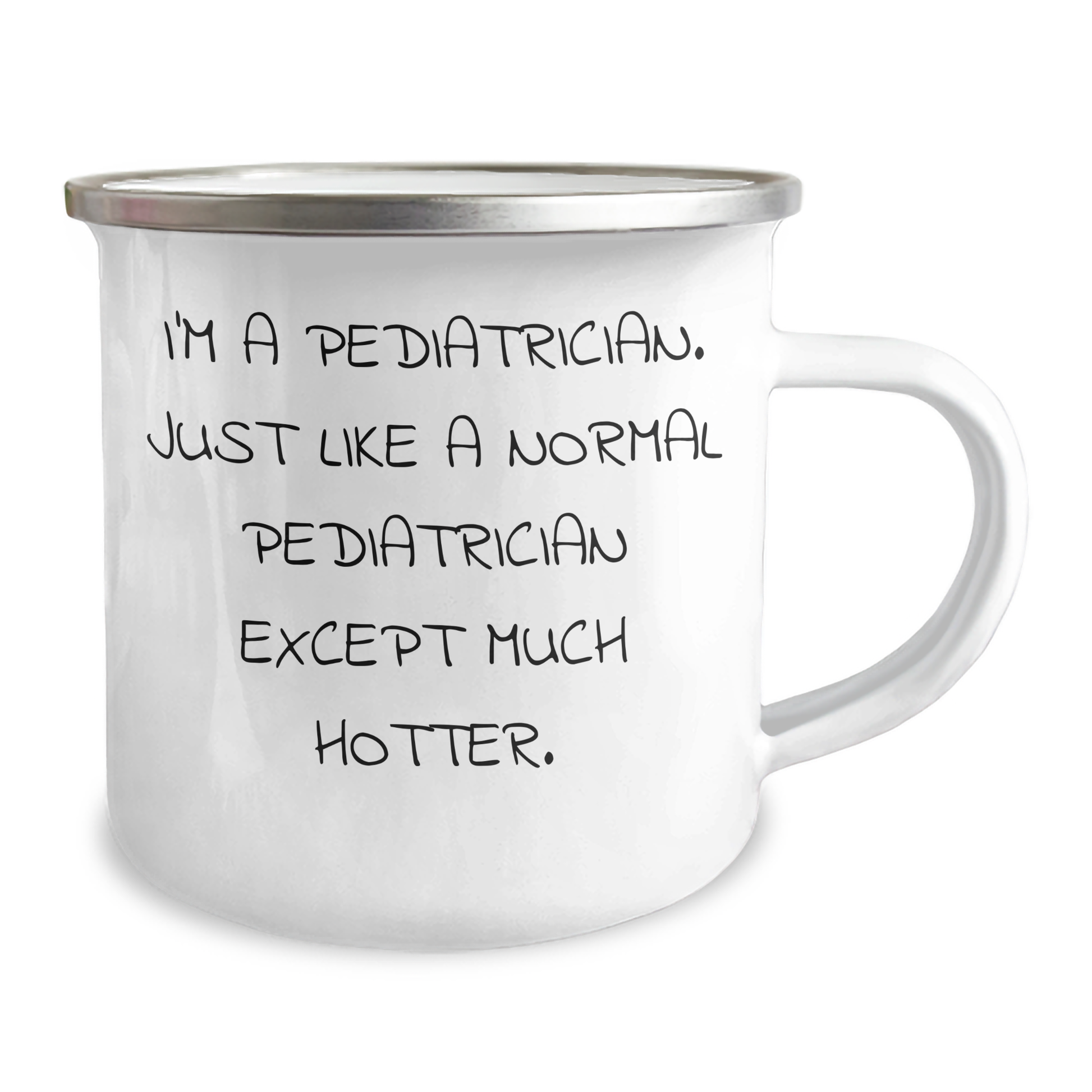 Pediatrician Gifts from Men, Funny Camping Mug for Graduation, 'I'm A Pediatrician. Just Like A Normal Pediatrician Except Much Hotter.' Quote, 12 oz Stainless Steel with Enamel Finish