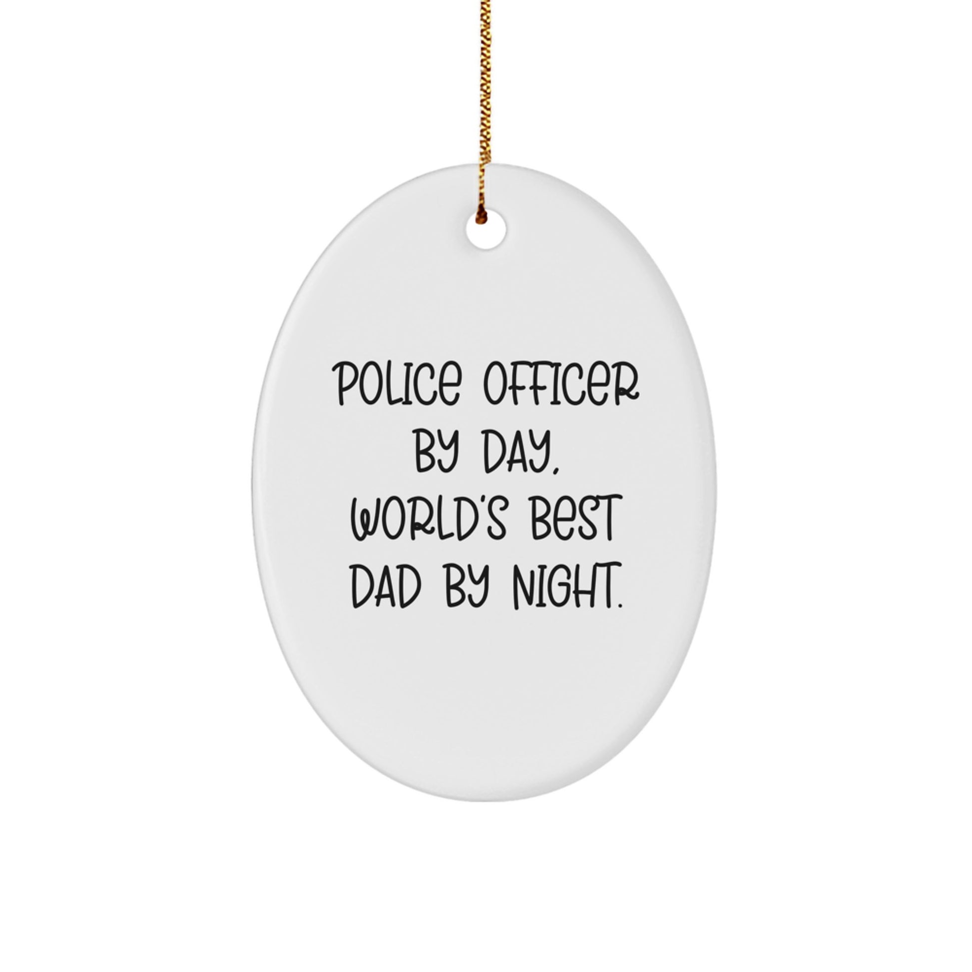 Police Officer Gifts, Funny Oval Ornament - 'Police Officer By Day, World's Best Dad By Night.' Gifts from Dad for Police Officer, Christmas Unique Gifts