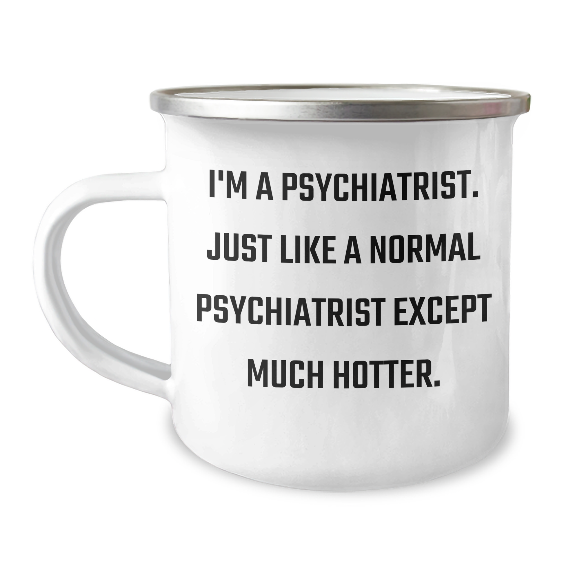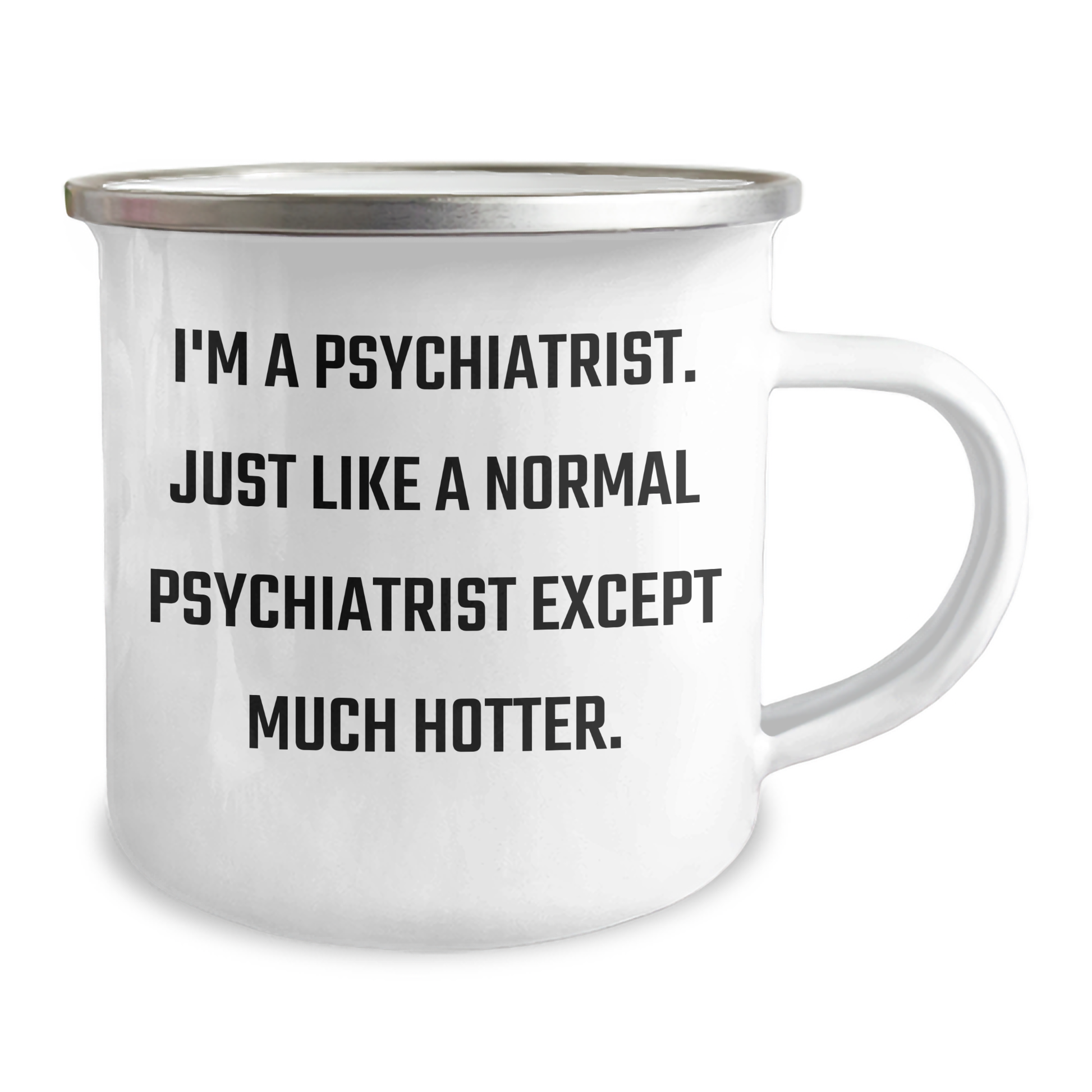 This mug is perfect for psychiatrists who love camping and the outdoors. The quote 'I'm a psychiatrist. Just like a normal psychiatrist except much hotter.' is sure to bring a laugh and a sense of pride. And with its easy-to-clean design, this mug is perfect for daily use. So why wait? Get your psychiatrist the gift they deserve and show them how much you care.