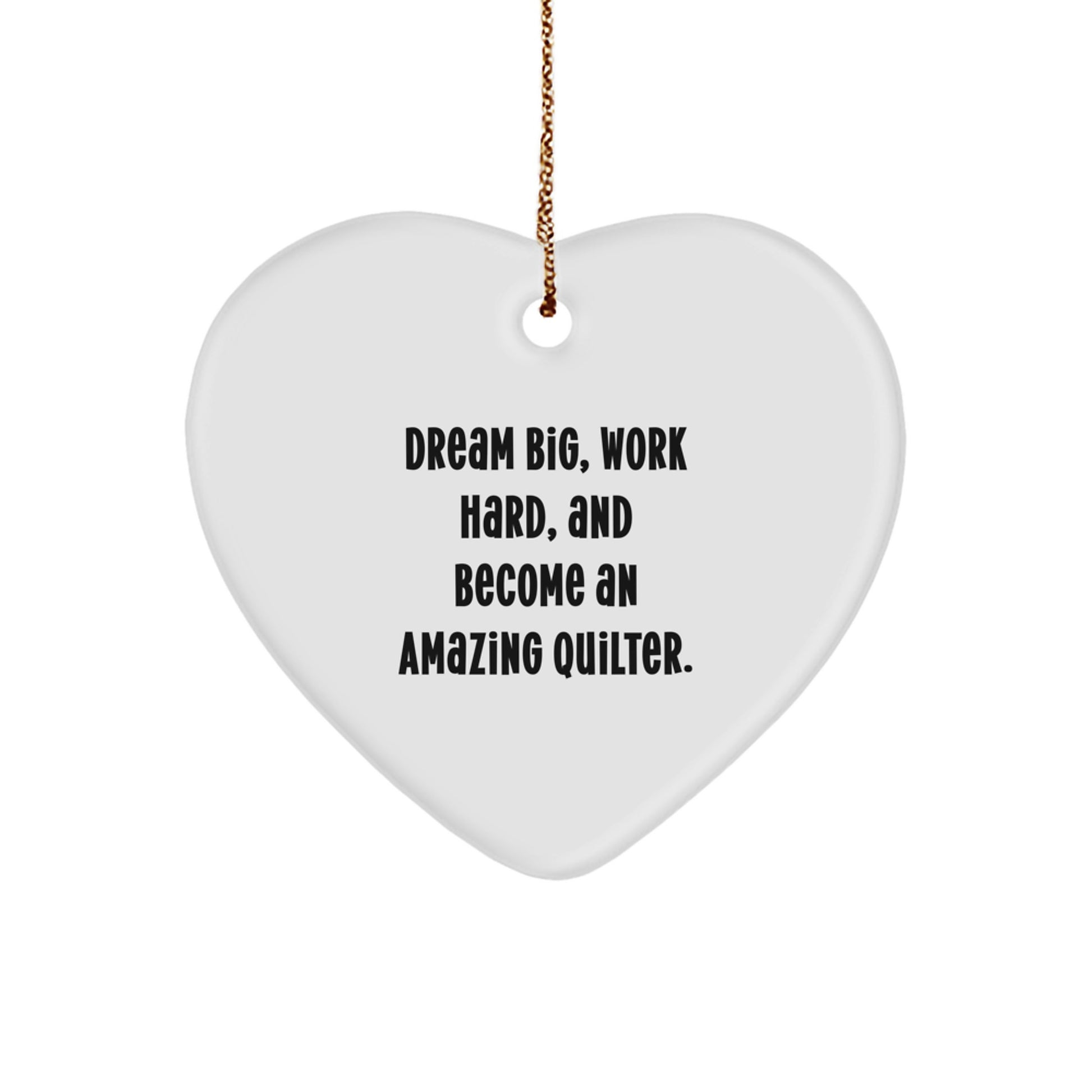 - This Heart Ornament is a thoughtful gift for any Quilter, with a vibrant design that will inspire and motivate them to Dream Big, Work Hard, and Become An Amazing Quilter.