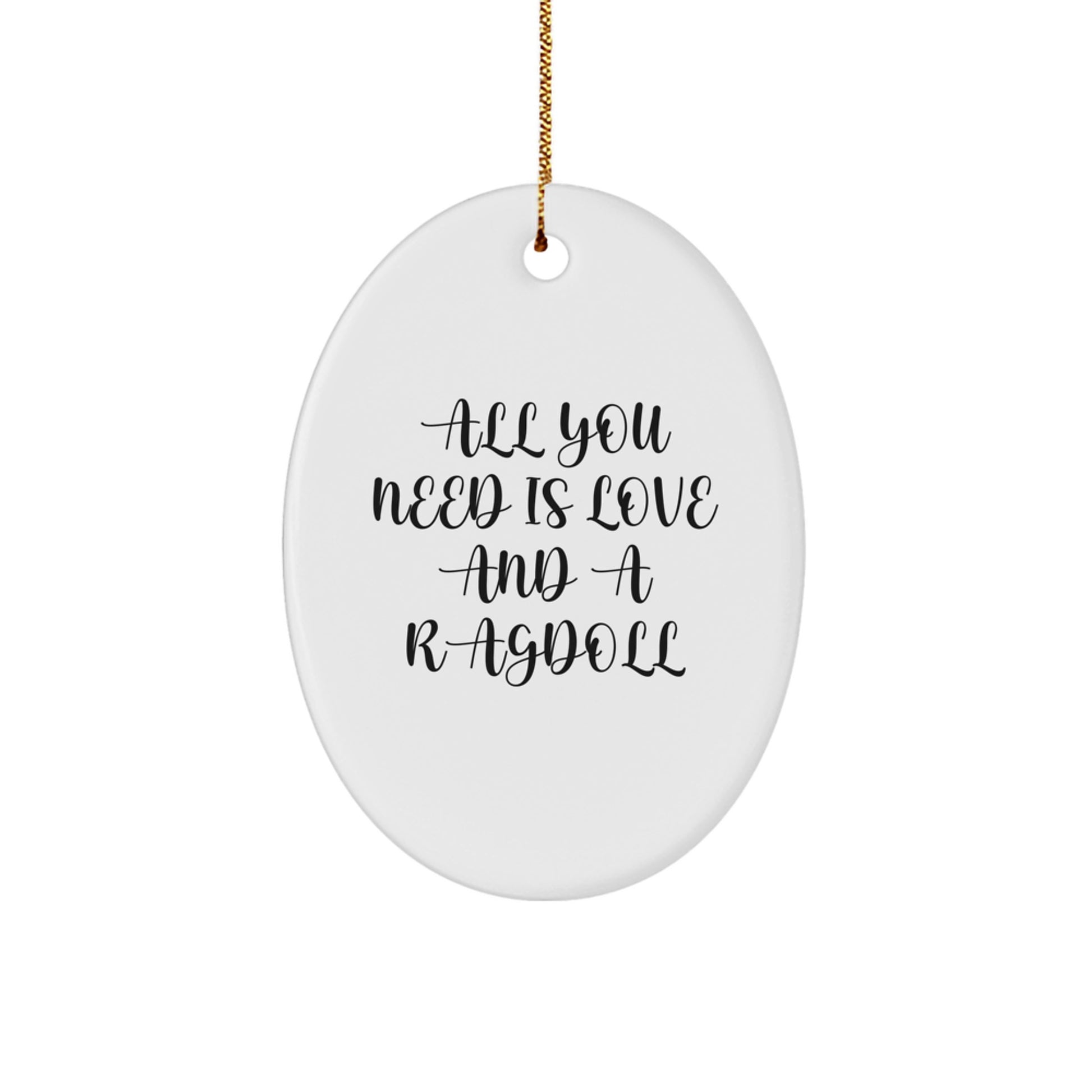 Ragdoll Cat Lovers Gifts from Family - Oval Ornament with All You Need Is Love Quote, White, Christmas Unique Presents