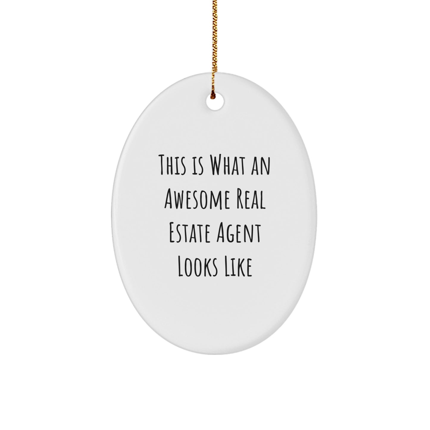 This is the ideal gift for any real estate agent who is awesome! Whether you're looking for a unique present for a friend or coworker, this oval ornament is sure to bring a smile to their face. Made from sturdy MDF with a high-gloss plastic finish, it's lightweight and resistant to breaking, making it a great choice for households with children or pets. The vibrant colors and festive gold cord make it easy to hang and enjoy. Give the gift of appreciation and recognition to that special real estate agent in your life.