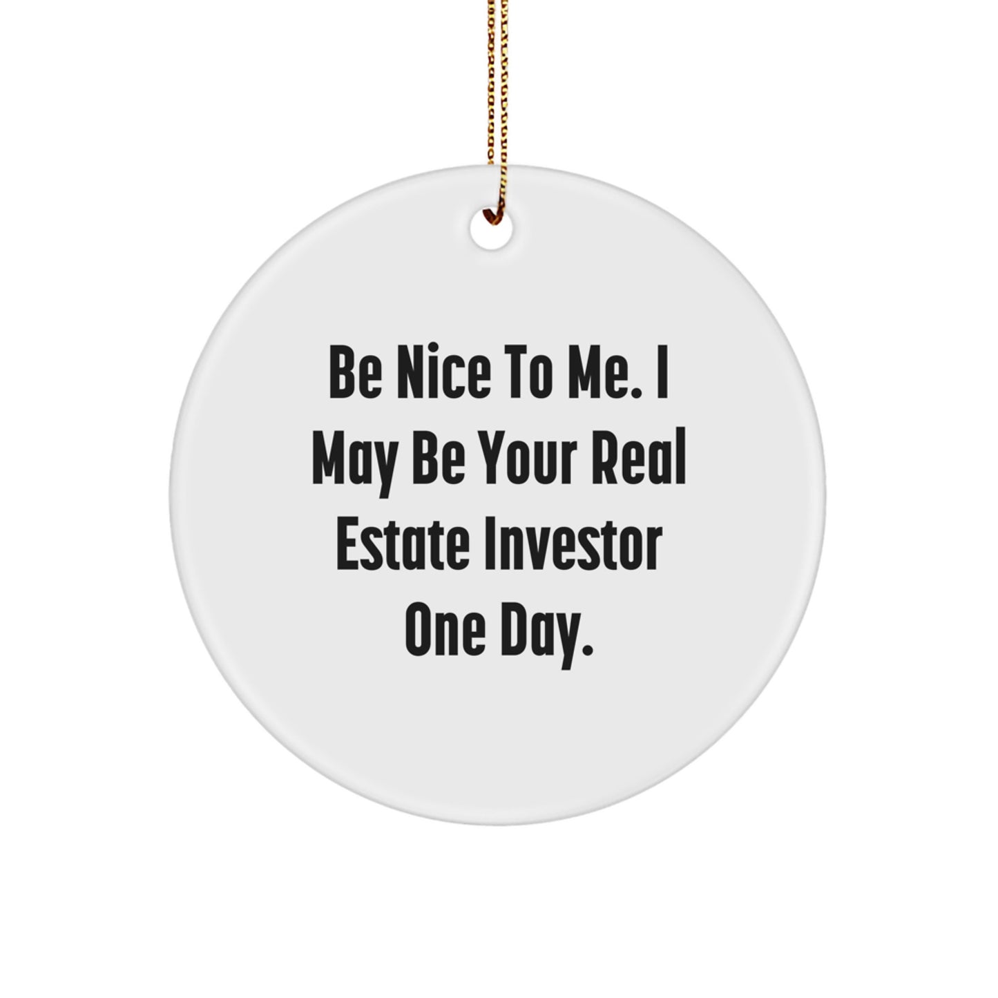 - This ornament is a great way to add a personal touch to your holiday decorations, and the quote 'Be Nice To Me. I May Be Your Real Estate Investor One Day.' is sure to bring a smile to their face. Whether you're a seasoned real estate investor or just starting out, this gift is sure to be a hit.