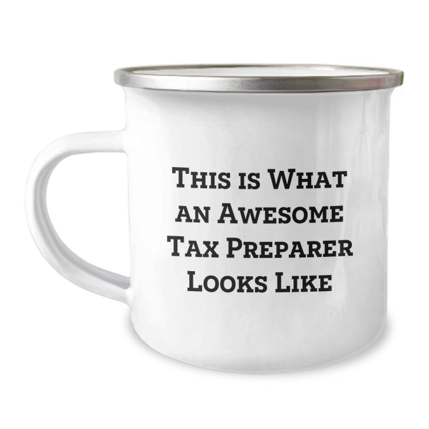 Are you tired of giving the same old boring gifts to the tax preparer in your life? Look no further! This funny quote on a camping mug is the perfect way to show your appreciation for their hard work. The quote reads: 'This Is What An Awesome Tax Preparer Looks Like'. It's a great way to add some humor to their daily routine and make them feel special. Whether you're a family member, coworker, or friend, this gift is sure to bring a smile to their face.