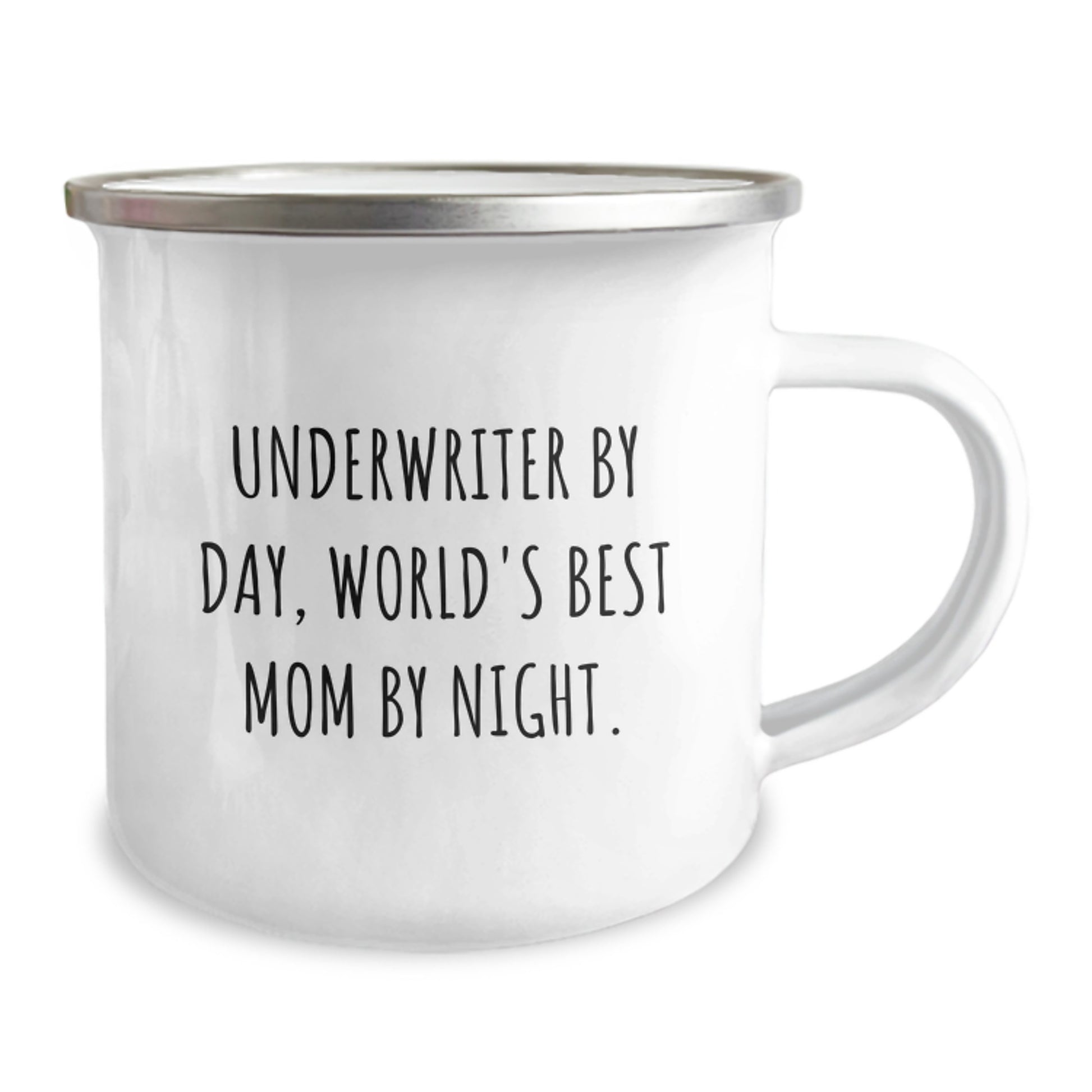 Are you searching for a unique and funny gift for the underwriter in your life? Look no further! This camping mug is perfect for the underwriter who is also a world's best mom by night. The quote 'Underwriter by day, World's Best Mom by Night' is a hilarious and relatable message that will bring a smile to their face. Make it a graduation gift that they will cherish forever. The mug is made of high-quality stainless steel with enamel finish, has a 12 oz capacity, and is easy to clean. It's the ideal gift for friends, family, or coworkers to show your appreciation for their hard work. So why wait? Don't miss out and make their day!