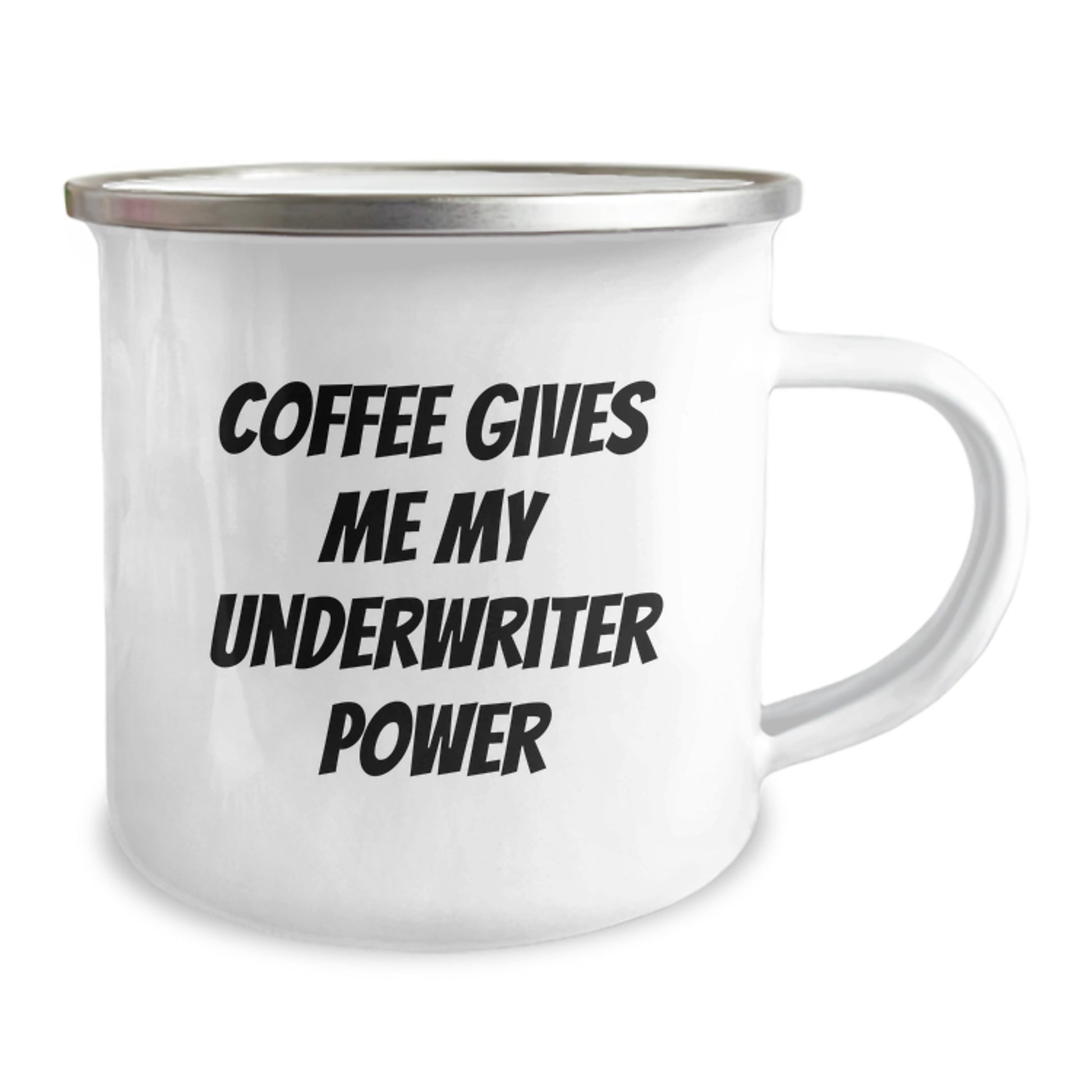 Are you an Underwriter enthusiast or looking for a unique gift for a special Underwriter in your life? Look no further! This funny quote Camping Mug is the perfect way to show your appreciation for their hard work and dedication. The quote 'Coffee Gives Me My Underwriter Power' is sure to bring a smile to their face every time they take a sip.