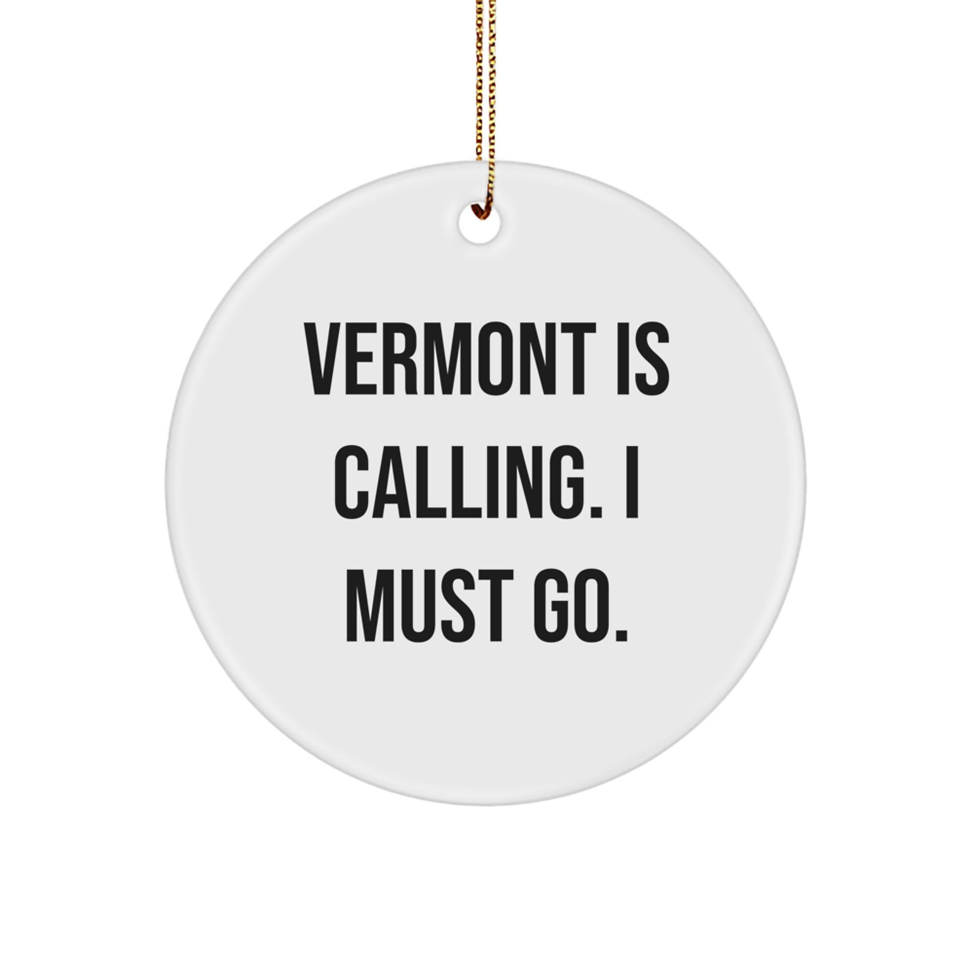 - Give the gift of Vermont this holiday season with our 'Vermont Is Calling, I Must Go!' Circle Ornament. It's a thoughtful and meaningful way to show your love and appreciation for the Green Mountain State.