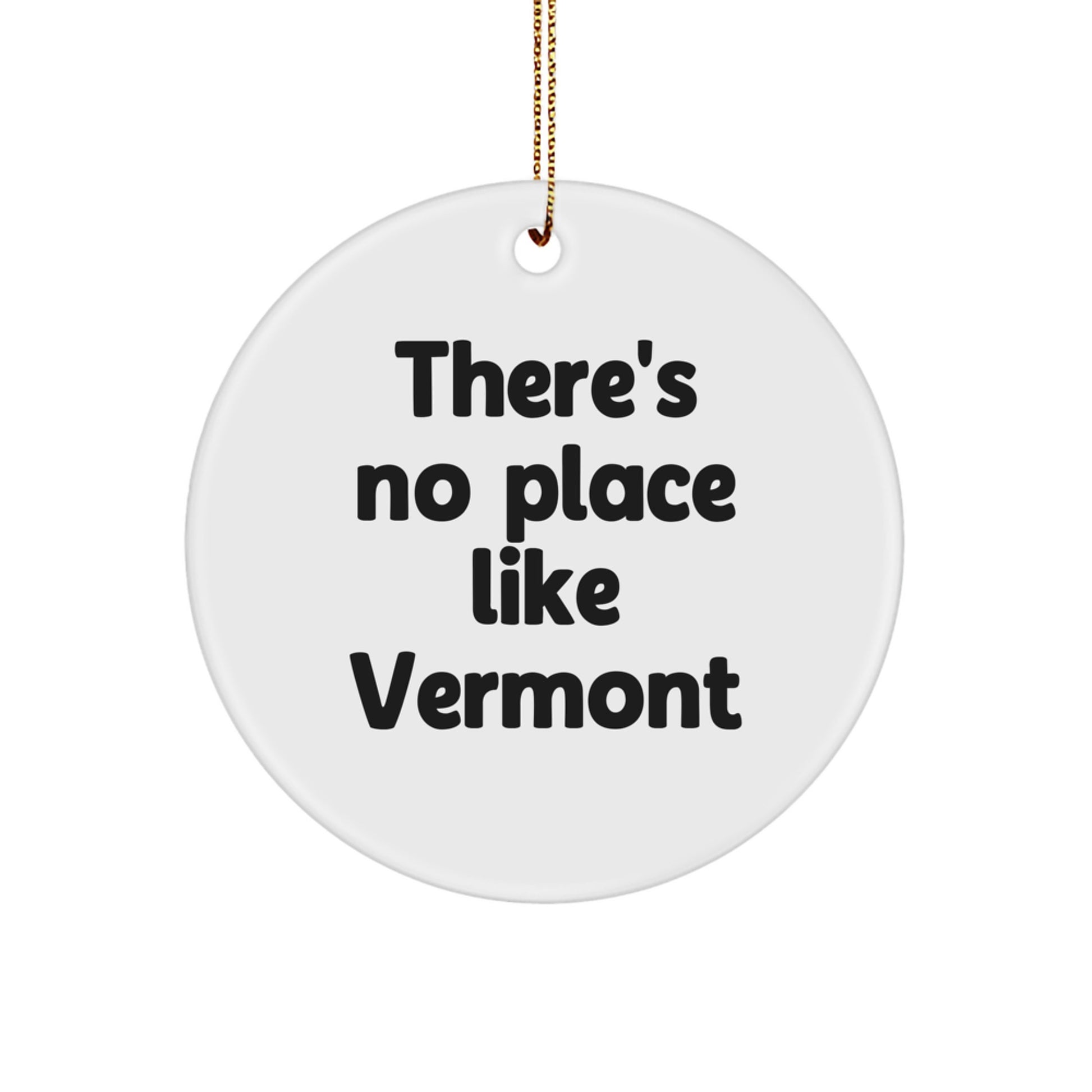 - Add a touch of Vermont charm to your holiday decor with this unique circle ornament, featuring the quote 'There's No Place Like Vermont'