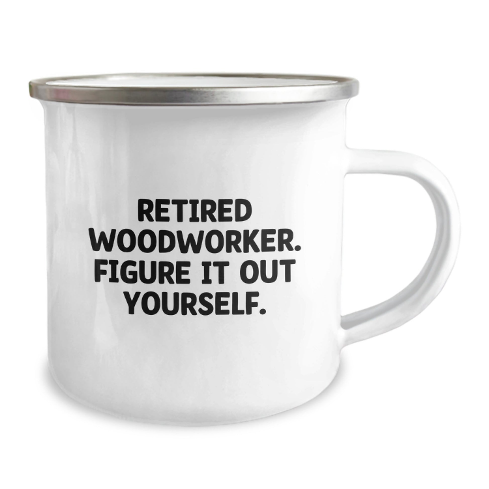 For Woodworker enthusiasts, this Camping Mug is a unique gift idea for any occasion. Inspired by the quote 'Retired Woodworker. Figure It Out Yourself.', this 12 oz stainless steel mug with enamel finish is a thoughtful present for a Woodworker graduate or any outdoor enthusiast.